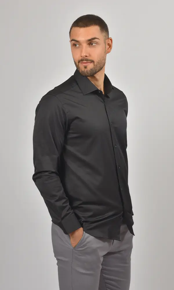 Ova Satenska Crna Košulja iz kolekcije ATRIUM FASHION je moćan komad koji kombinuje klasičnu crnu boju sa luksuznim, suptilnim satenskim sjajem. Idealna je za večernje izlaske, smart-casual događaje i poslovne sastanke gde želite da ostavite utisak prefinjenosti i autoriteta.