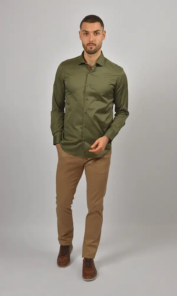 Ova Košulja Maslinasto Zelena/Zemljano Zelena iz kolekcije ATRIUM FASHION donosi toplu, bogatu boju, idealnu za jesenje i zimske smart-casual kombinacije. Njen definisan kroj garantuje sofisticiran i trendi izgled.
