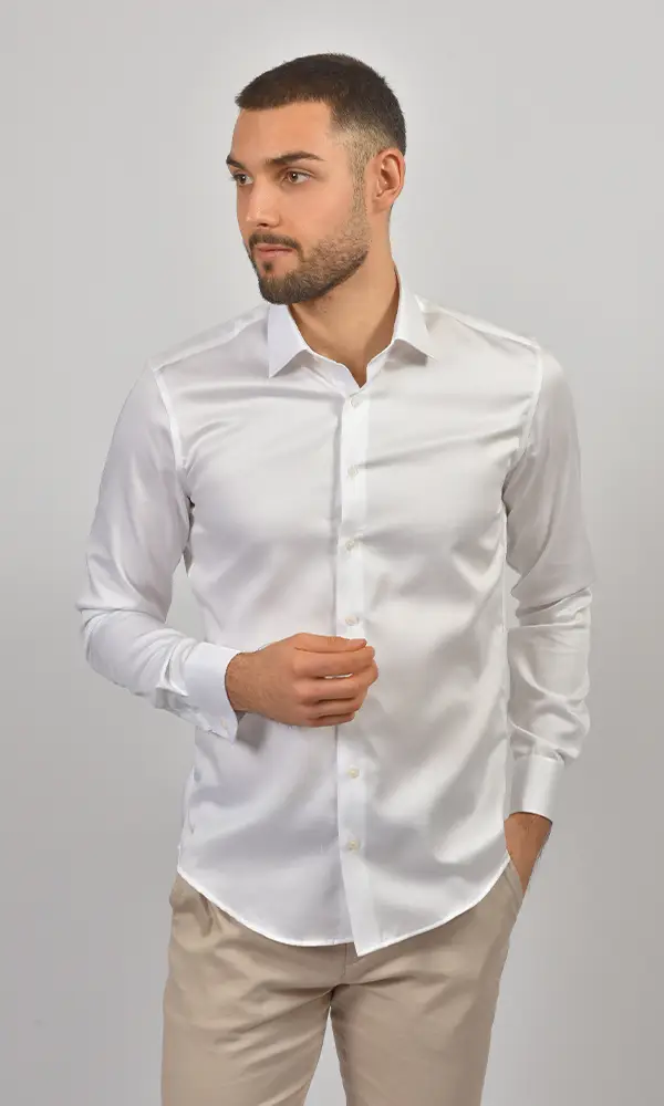 Ova Satenska Bela Košulja sa Duplim Manžetnama iz kolekcije ATRIUM FASHION je epitom klasičnog, luksuznog formal wear-a. Kombinacija besprekorno bele boje, satenskog sjaja i manžetni za dugmad čini je obaveznim izborom za venčanja, black tie događaje i najsvečanije prilike.