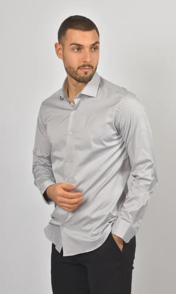Ova Satenska Svetlo Siva Košulja iz kolekcije ATRIUM FASHION donosi moderan i prefinjen izgled. Njen blagi sjaj i neutralna boja čine je idealnom za elegantne večernje događaje, koktele ili poslovne prilike gde je dozvoljena diskretna doza glamura.