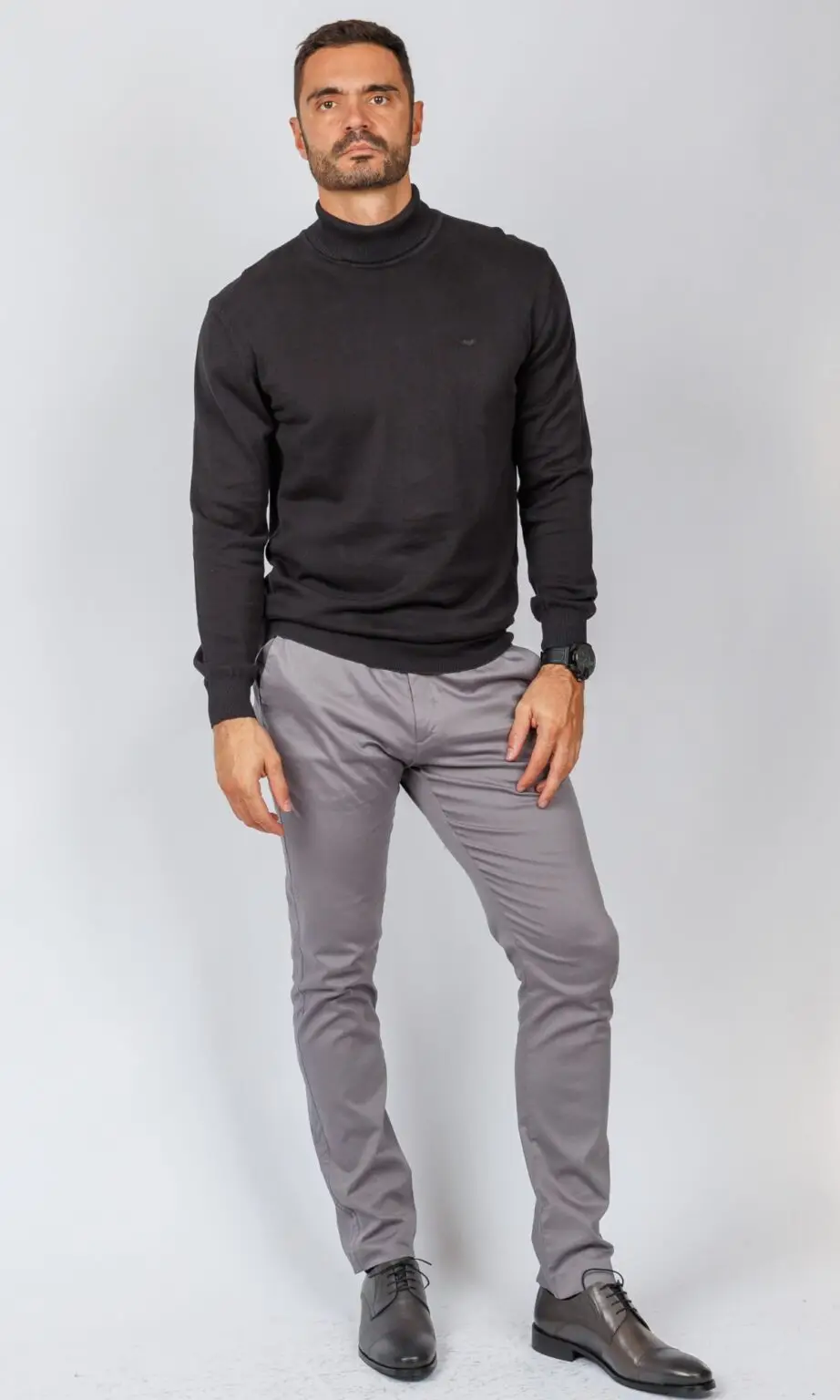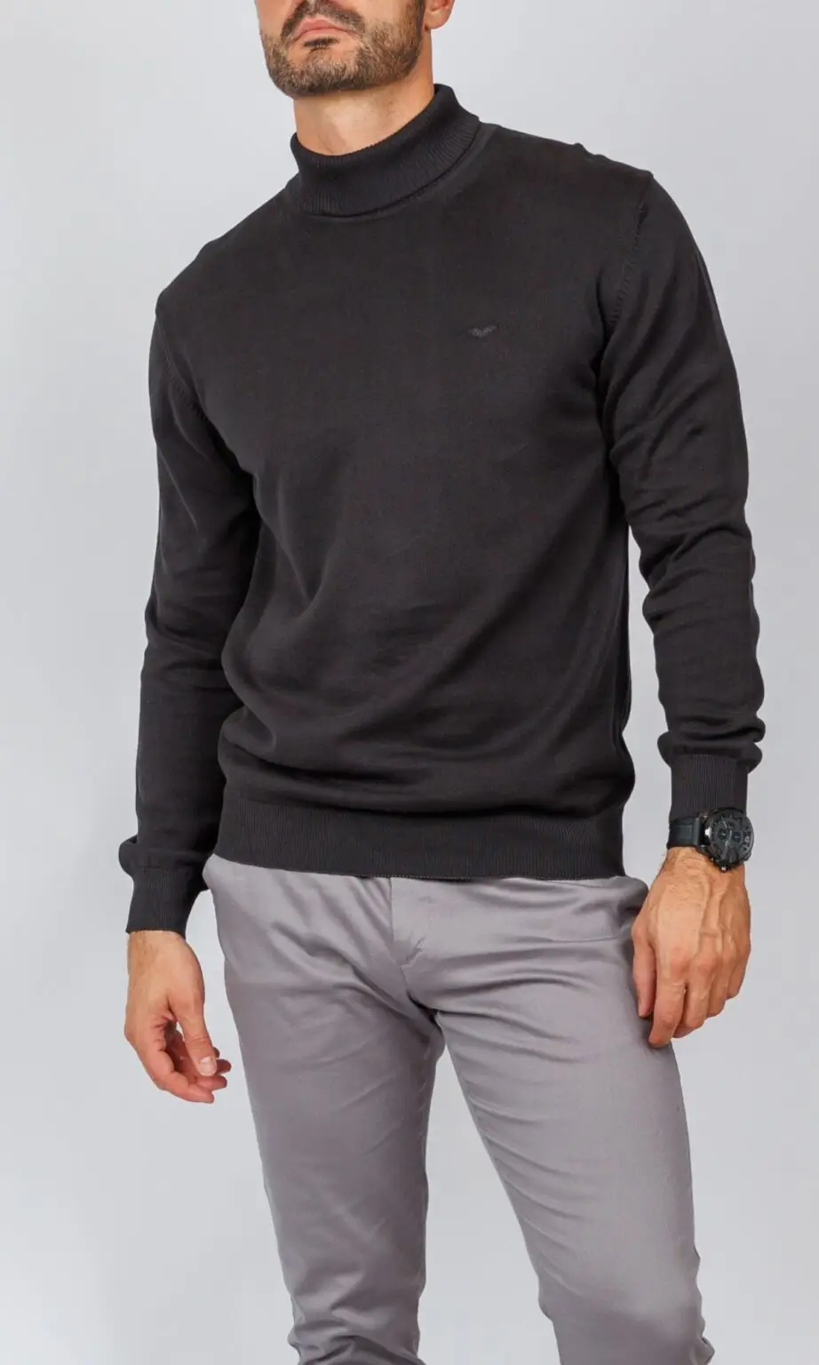 Muški džemper sa rol kragnom u klasičnoj crnoj boji. Idealan slojeviti komad izrađen od fine pletenine, sa diskretnim logotipom. Neizostavan deo elegantne zimske garderobe, u skladu sa stilom Atrium Fashion.