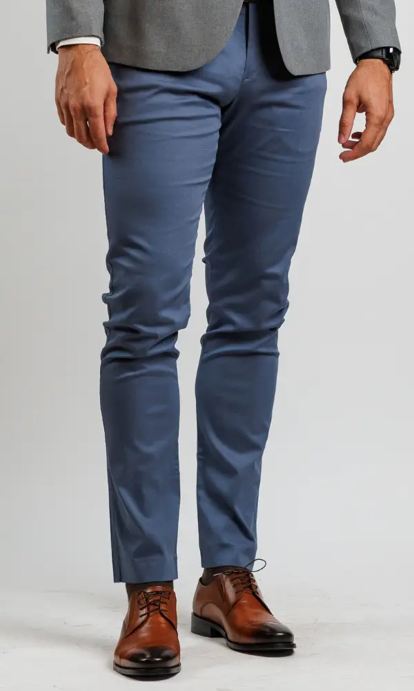 ATRIUM FASHION predstavlja Slim Fit pantalone u atraktivnoj svetloplavoj boji. Ovaj model kombinuje moderan kroj koji prati liniju tela sa udobnošću, idealan za unosite svežinu i stil u vaš poslovni ili elegantni casual izgled. Savršen izbor za proleće i leto.