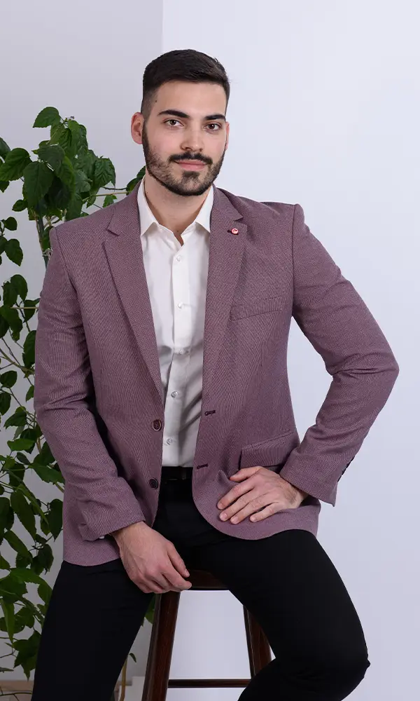 Ovaj upečatljivi bordo/crveni sako iz kolekcije ATRIUM FASHION donosi duboku, bogatu boju i suptilnu, ali izraženu teksturu. Idealan je za muškarce koji žele da se istaknu. Savršen je za smart-casual večernje kombinacije, formalnije proslave ili kao upečatljiv poslovni komad.