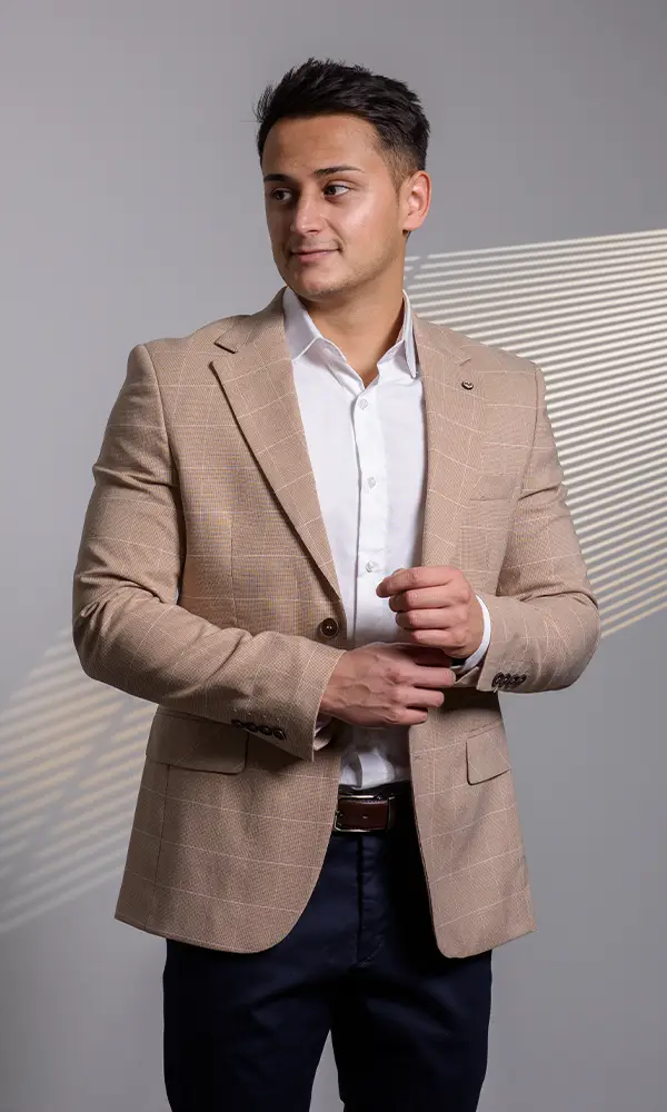Ovaj svetli, bež/kamel karirani sako iz kolekcije ATRIUM FASHION idealan je za prolećne i letnje smart-casual kombinacije. Njegova topla boja i izraženi karirani dezen u belim i braon tonovima donose osvežavajuću i prefinjenu notu vašem stilu.