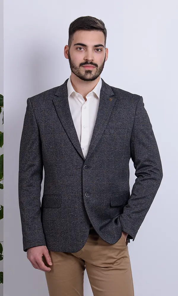 Ovaj Tamno Sivi Sako sa Braon Karo Dezenom iz kolekcije ATRIUM FASHION nudi spoj robustne, vunaste teksture i prefinjenog Windowpane Check dezena u toplim braon tonovima. Idealan je za jesenje i zimske smart-casual kombinacije, donoseći klasični engleski šarm.