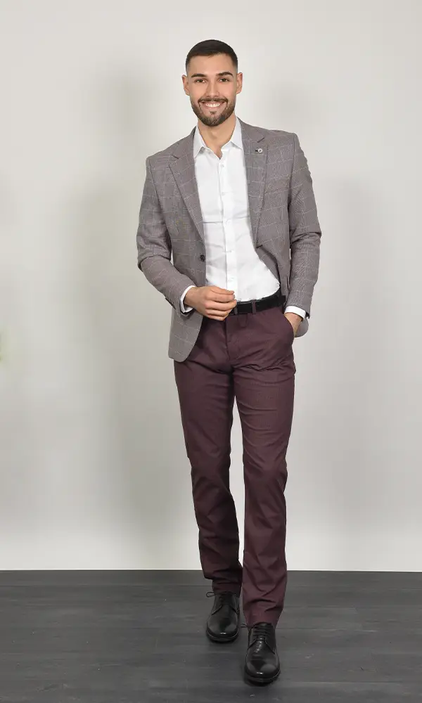 Ovaj upečatljivi, braon-crveni karirani sako iz kolekcije ATRIUM FASHION donosi toplu, bogatu boju i klasičan dezen. Idealno kombinuje sezonsku eleganciju sa prefinjenom retro notom. Savršen je za smart-casual stil ili poslovna okupljanja, a najbolje se slaže sa pantalonama u tamnim, vinskim tonovima (kao na slici) ili tamno sivim/crnim pantalonama.